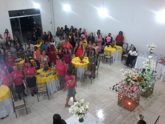 Dicas pra organizar chá de mulheres evangélicas. Programação: 1. Começar com uma oração e leitura bíblica 2. Momento de louvor e adoração 3. Dinâmicas 4. Palestra com apostila ou promover debates de assuntos relacionados á mulher 5. Sorteio de brindes 6. Encerrar com uma oração e servir um lanche Objetivo: 1. Promover união, amizade, compartilhar experiências de mulher pra mulher, trazer instrução e conhecimentos no mundo feminino. 2. Utilizar deste evento para trazer mulheres não evangélicas para participar e conhecer nosso grupo.(confeccionar convites para visitantes) Organização: Organizar uma vez por mês, aos sábados (final de tarde –início da noite) * escalar duas Recepcionista uniformizadas *1 irmã pra fazer as dinâmicas * convidar palestrante de fora ou da nossa igreja mesmo *Lanches será servido com a contribuição de cada uma trazendo um prato. *Os brindes serão doados pelas próprias irmãs alguns dias antes ou comprados pelo caixa das irmãs. Dinamicas: SENTINDO O ESPÍRITO Descrição: indefinido. Tempo Estimado: 15 minutos. Objetivo: Mostra que não adianta falarmos do Espírito Santo se não provarmos e sentirmos ele em nossas vidas. Material: Uvas.-Descrição: O coordenador deve falar um pouco do Espírito Santo para o grupo. Depois o coordenador da dinâmica deve mostrar o cacho de uva e perguntar a cada um como ele acha que esta o sabor destas uvas.-Obviamente alguns iram descordar a respeito do sabor destas uvas, como: acho que esta doce, que esta azeda, que esta suculenta etc.-Após todos terem respondido o coordenador entrega uma uva para cada um comer. Então o coordenador deve repetir a pergunta (como esta o sabor desta uva?). Mensagem: Só saberemos o sabor do Espírito Santo se provarmos e deixarmos agir em nos.